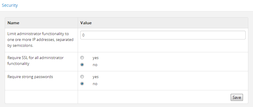 This feature allows administrators to limit administrator functionality to one or more IP addresses or IP ranges. Separate multiple IP address or ranges by semicolons, and use a dash to indicate an IP range. For example: