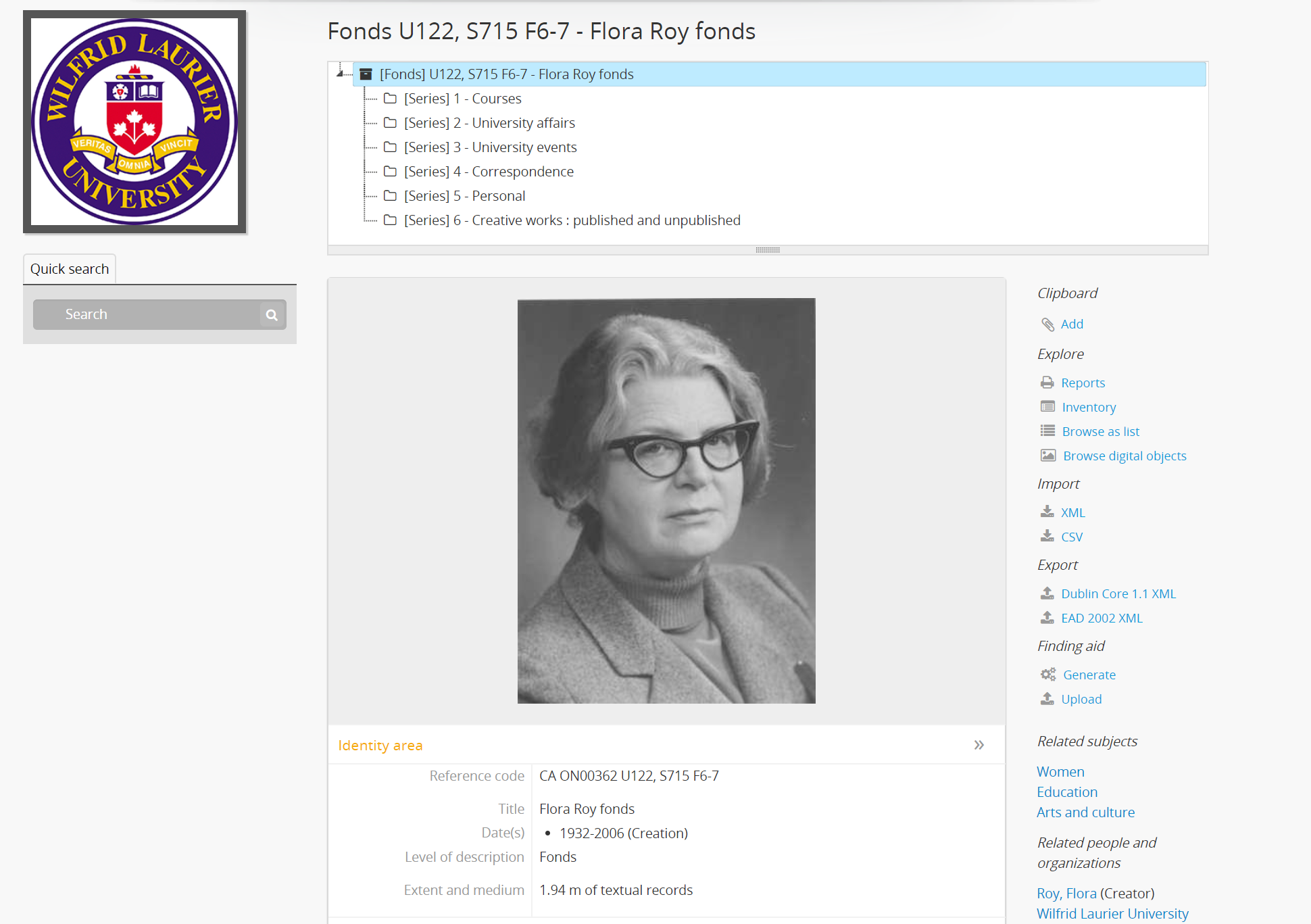 In AtoM, an archival description is a body of information about an archival record or records. The descriptions provide contextual information about the archival materials and are arranged into hierarchical levels (fonds, series, files, items, and variations of these in accordance with institutional standards).