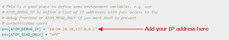 an image of the ATOM_DEBUG_IP variable in the php configuration file