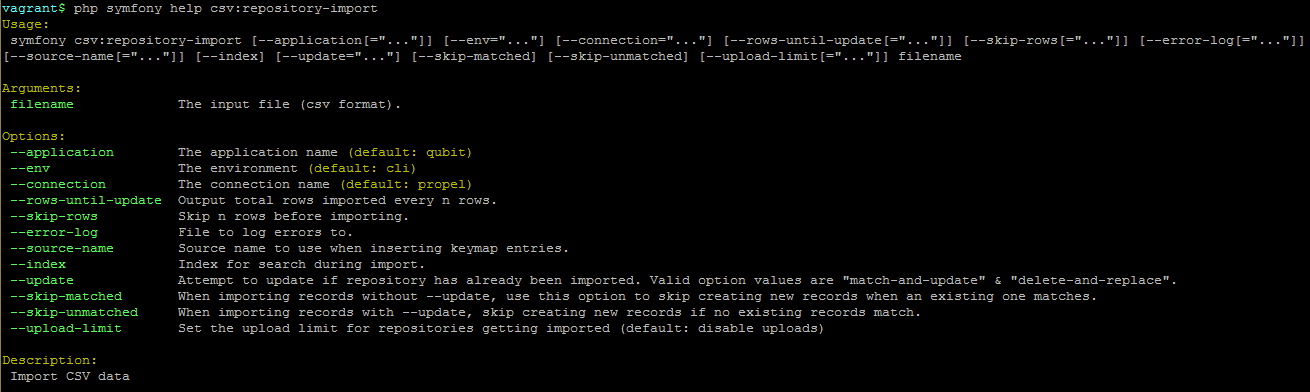 Entering php symfony help csv:accession-export into the command-line from
